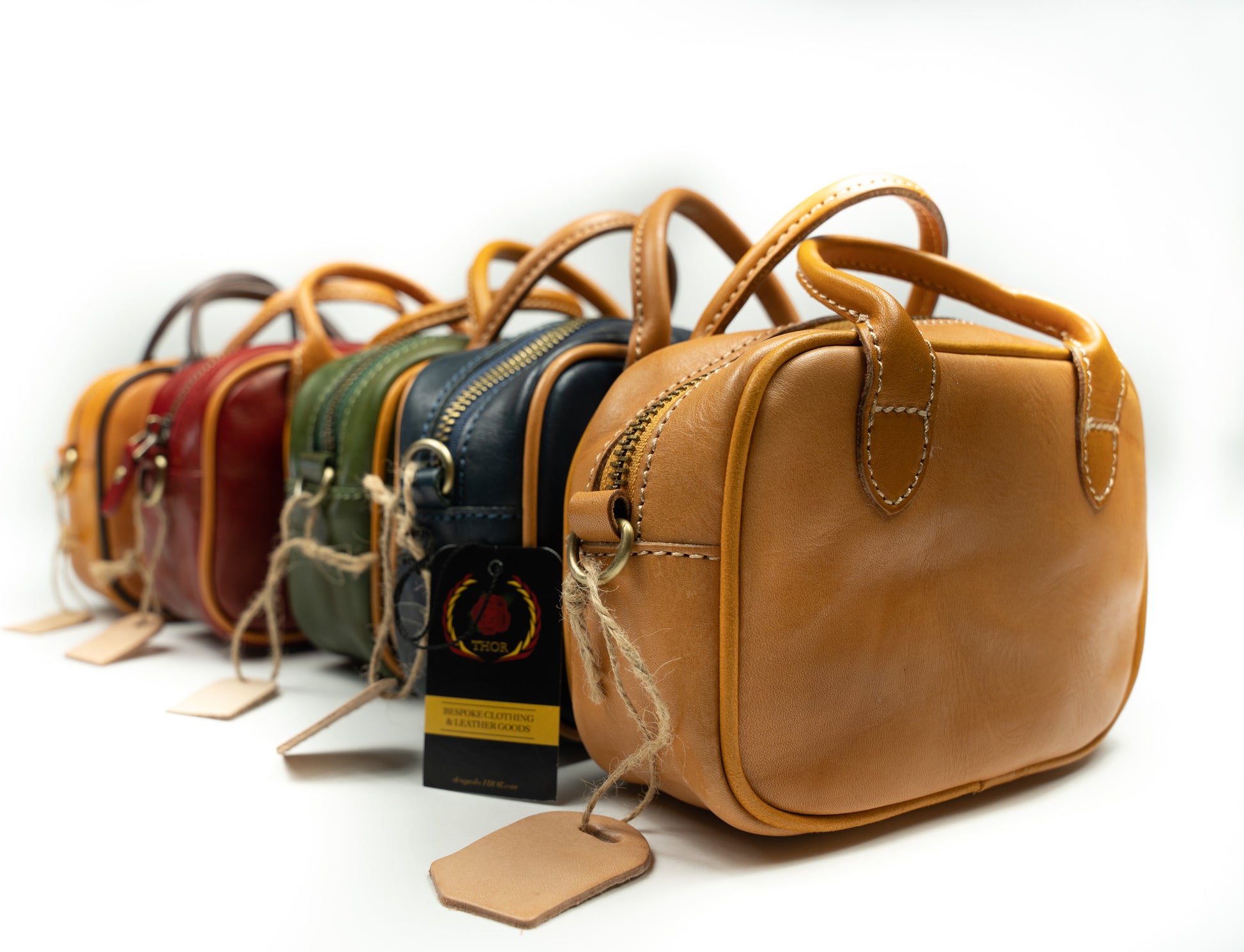 The Anne Micro Handbag is the perfect 'grab and go' bag! It's made of Italian leather and offers a generous zippered pouch, contrast handle and attachable shoulder strap. It's a fun way to carry all of your essentials! Available in Caramel, Blue, Green, Red, Black, and Tan.