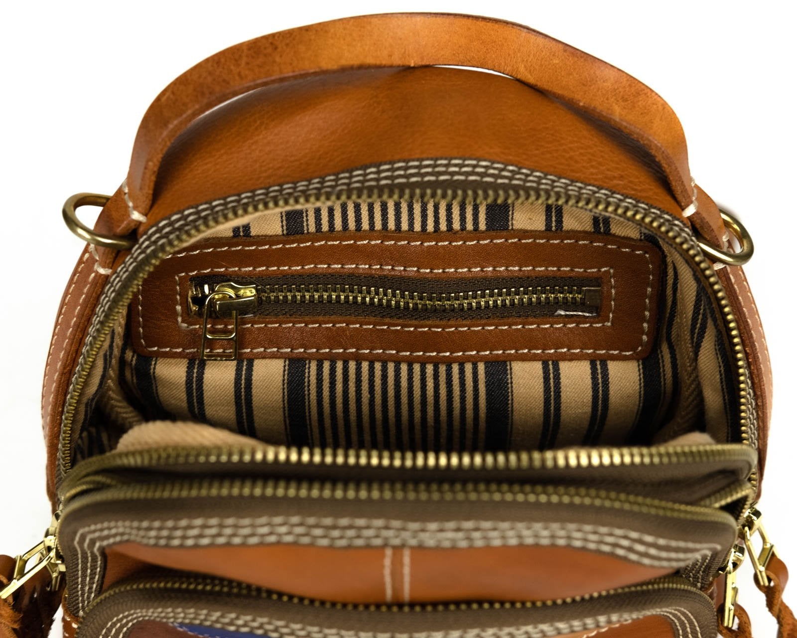 Beautifully handcrafted with 100% Italian leather and brass hardware. This mini backpack has great features, like the two front zipper pouches in the front and beautiful canvas interior. Open pocket and zip pocket inside. All leather adjustable straps that you can wear as a backpack or crossbody.