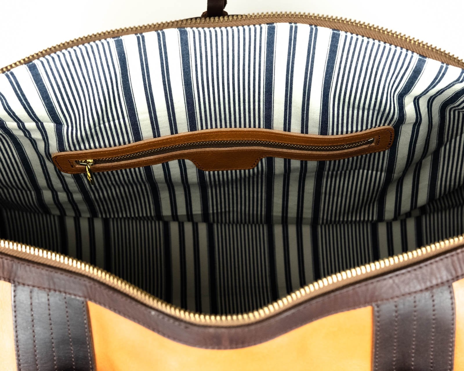 Beautifully handcrafted with 100% Italian leather and brass hardware. Outside pocket for go to items and an adjustable crossbody strap. Beautiful canvas interior with zipper pocket and two open pockets. This is the perfect travel bag for your weekend getaway.