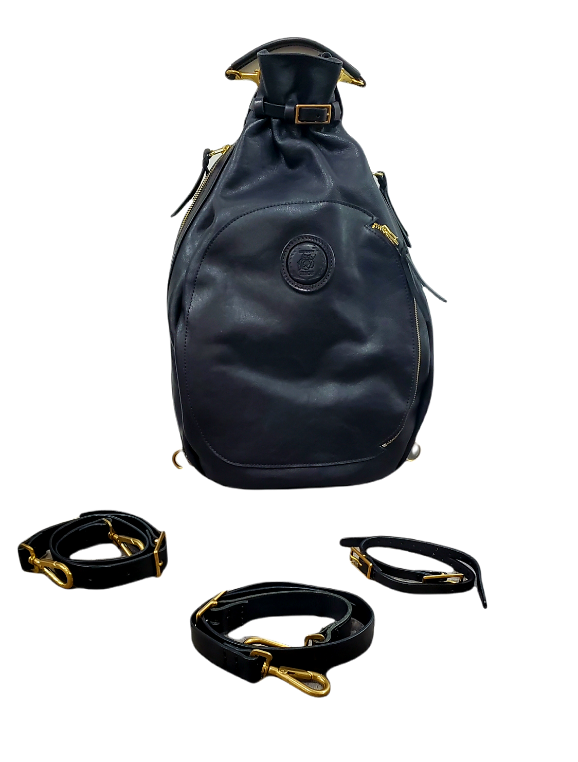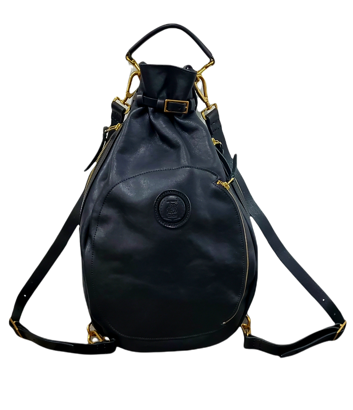 This incredibly unique backpack is hand-crafted from 100% Italian leather and finished with brass hardware. It's spacious interior can hold a laptop along with all of your day to day essentials. Large zippers on both sides of the backpack make the interior easy to access and an additional zippered pouch on the front is perfect for your cell phone and essentials!. t's distinctive design is guaranteed to leave a lasting impression wherever you go!