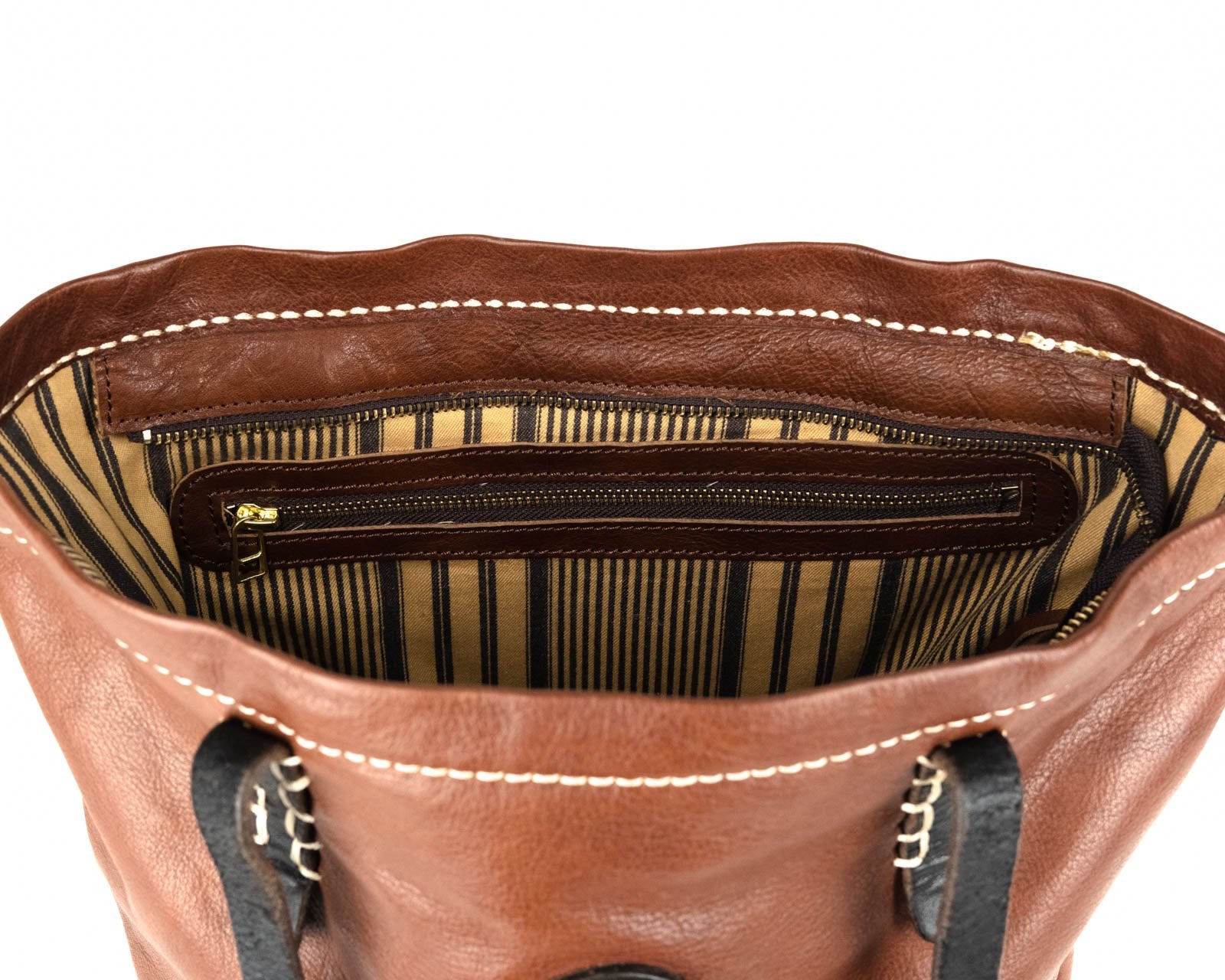 Beautifully handcrafted with 100% Italian leather and brass zippers. Two leather straps for over the shoulder comfort and back zipper pocket. Beautifully lined with canvas interior and full zip closure. Two open pockets and one zipper pocket. Great for everyday use.