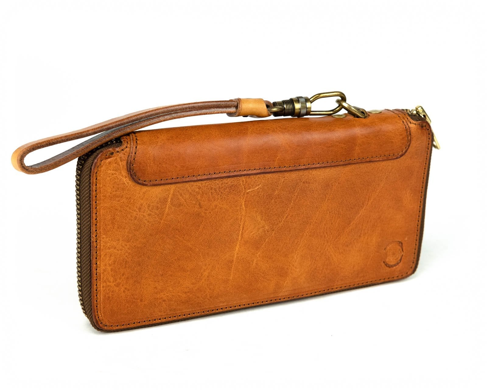 Beautifully handcrafted with 100% Italian leather and brass hardware. This beautiful wallet has a removable strap if you didn’t want to use it as a wristlet. Full zip around as it opens up with all leather interior. With nine card holders and an ID holder, this is the perfect travel wallet to hold everything. There’s even a passport case that is inside with it’s own three card holders and removes easily.